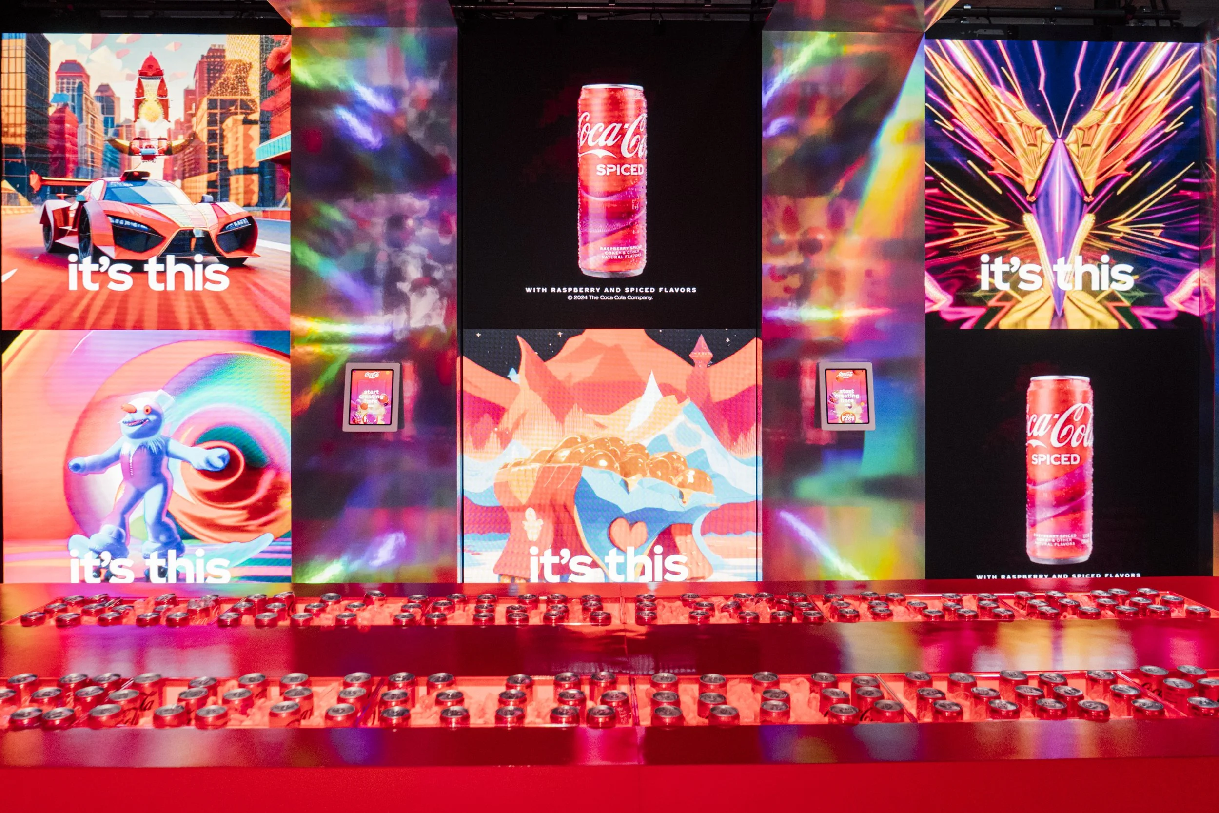 We used AI to inspire the exterior and mysteriously transform an ordinary building into an expression of the indescribable Coca-Cola Spiced flavor. Throughout the build-up period of this monumental art installation, it inconspicuously lacked any Coca Cola markings — driving speculation as earned media and organic social activity. Once revealed, the building open as the Spiced Shop, an art experience, where we invited everyone to try the new flavor and create their own visions of the taste of Coke Spiced using generative AI.