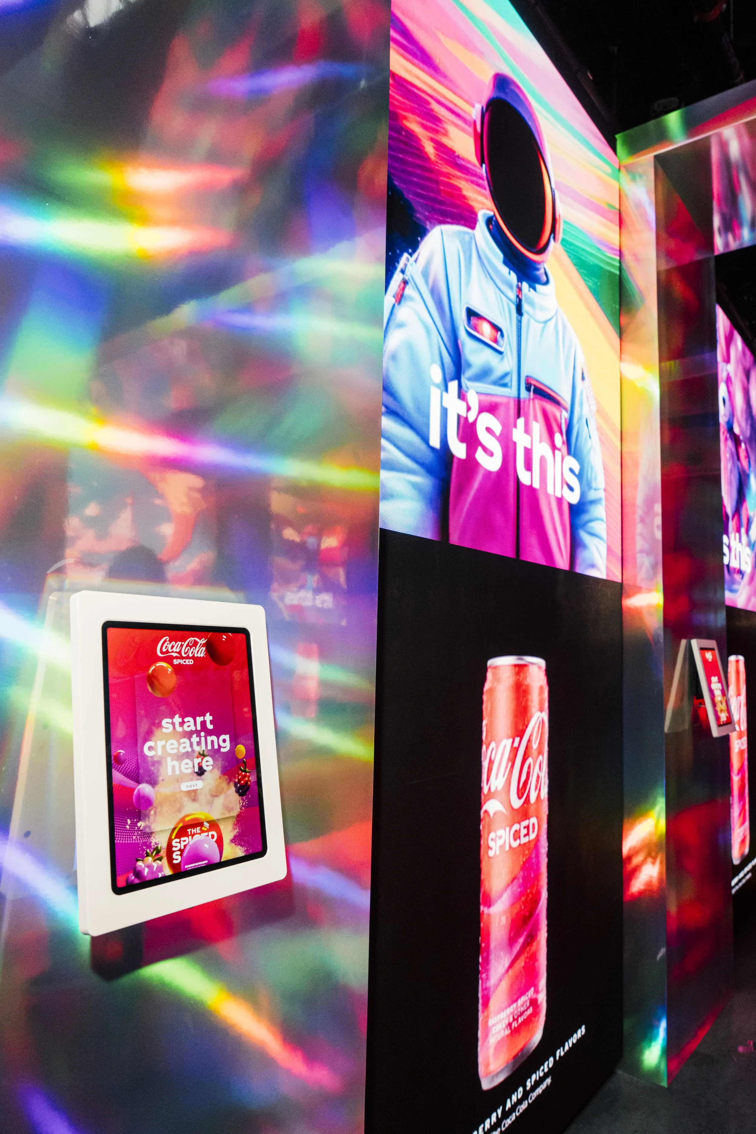 Inside, we created ai-enabled smart tasting stations, where guests were prompted with questions that analyzed their impressions of each “first ever” taste to create AI generated art & animations that were display in the gallery alongside campaign visuals in the spiced experience.